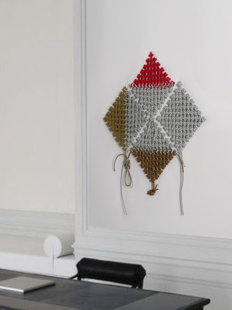 THE KNOT Wall hangings, wall trimming works, were born from the Tradition of Korean art of Knot MAEDUP. Suspended openworks animate a wall, divide the space, and filter the light. Strong from her experiences with Japan and for a major French house, Sarah ALOISI designs with high standards. Custom-made, each piece is braided with care to enhance and marry the desired idea with elegance.• Textile cords 300 references / leather Nappa • Designed and Handmade in France •